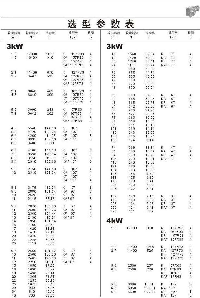 選型參數表3kW和4kW