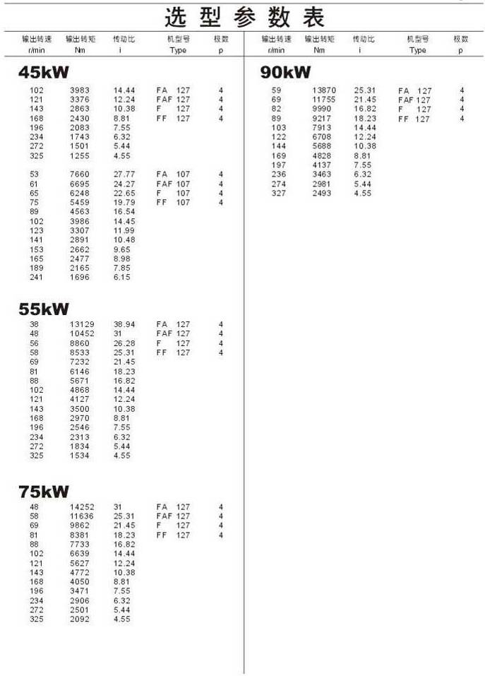 選型參數表45kW (續),55kW ,75kW ,90kW 142
