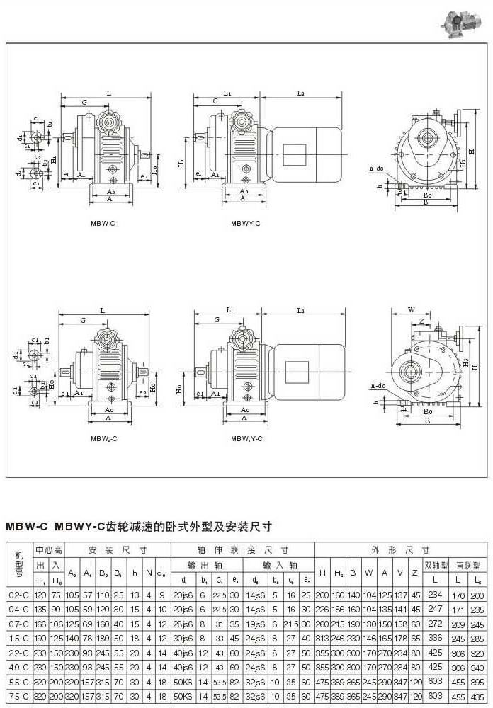 MBW-C MBWY-C齒輪減速機的臥式外型及安裝尺寸
