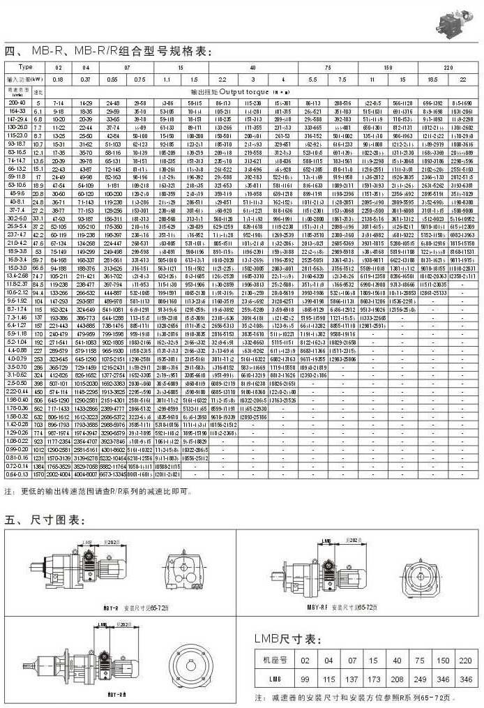 MB-R,MB-R/R則和型號規(guī)格表尺寸圖表