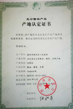 產(chǎn)地認證證書